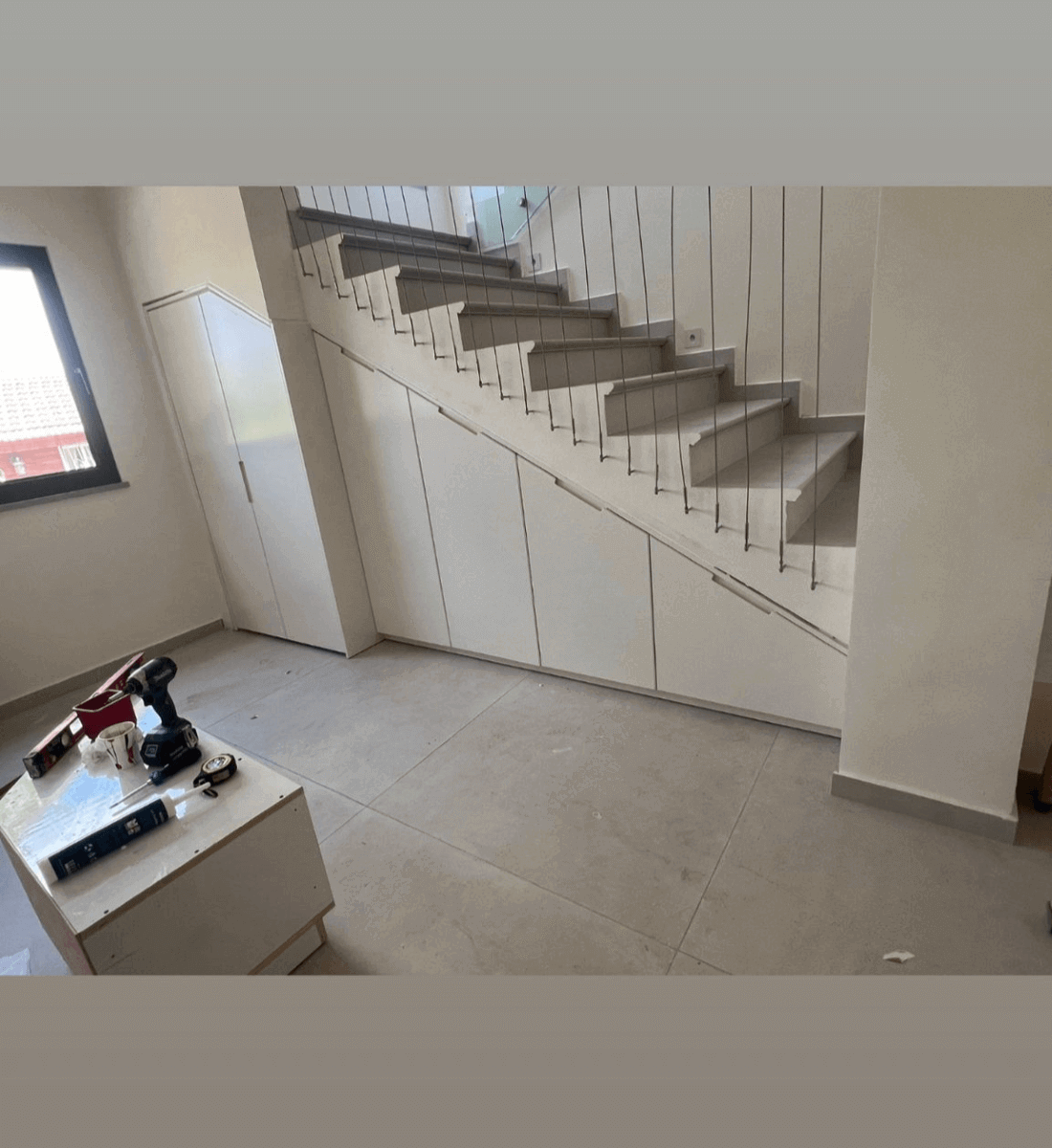 הארונות שמתחת למדרגות שלנו מותאמים אישית למבנה החלל ומציעים פתרון אחסון ייחודי, חכם ואלגנטי.